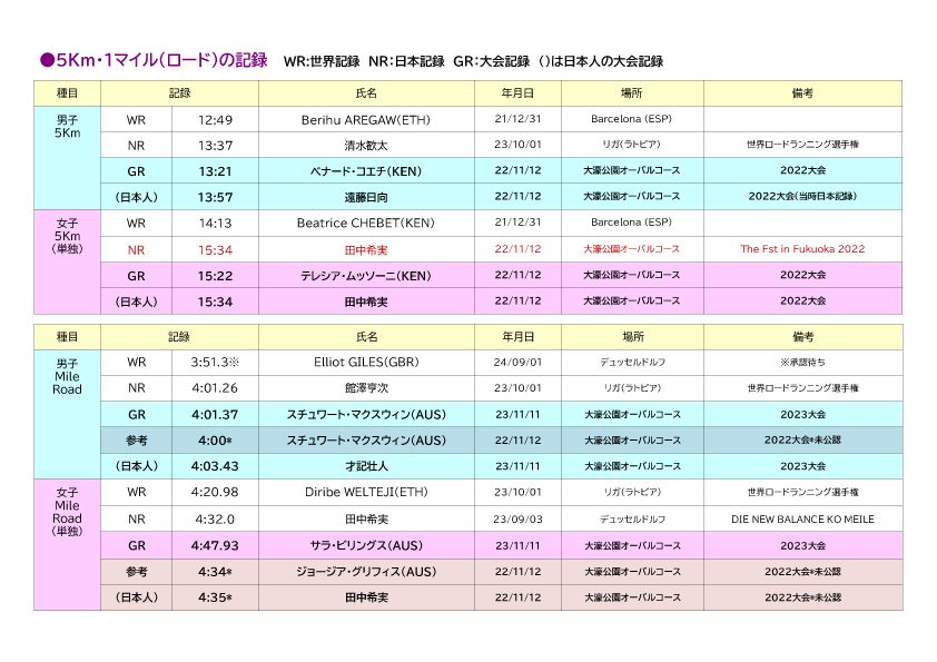 ・1マイル(ロード)※世界陸連[WA]・日本陸連公認コース